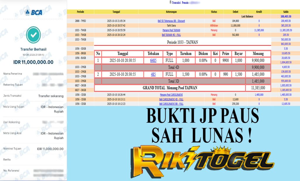 Bukti JP Paus User ahlxxxx Pada Pasaran Pool TAIWAN 10 Oktober 2025