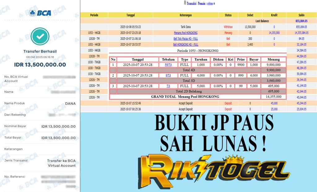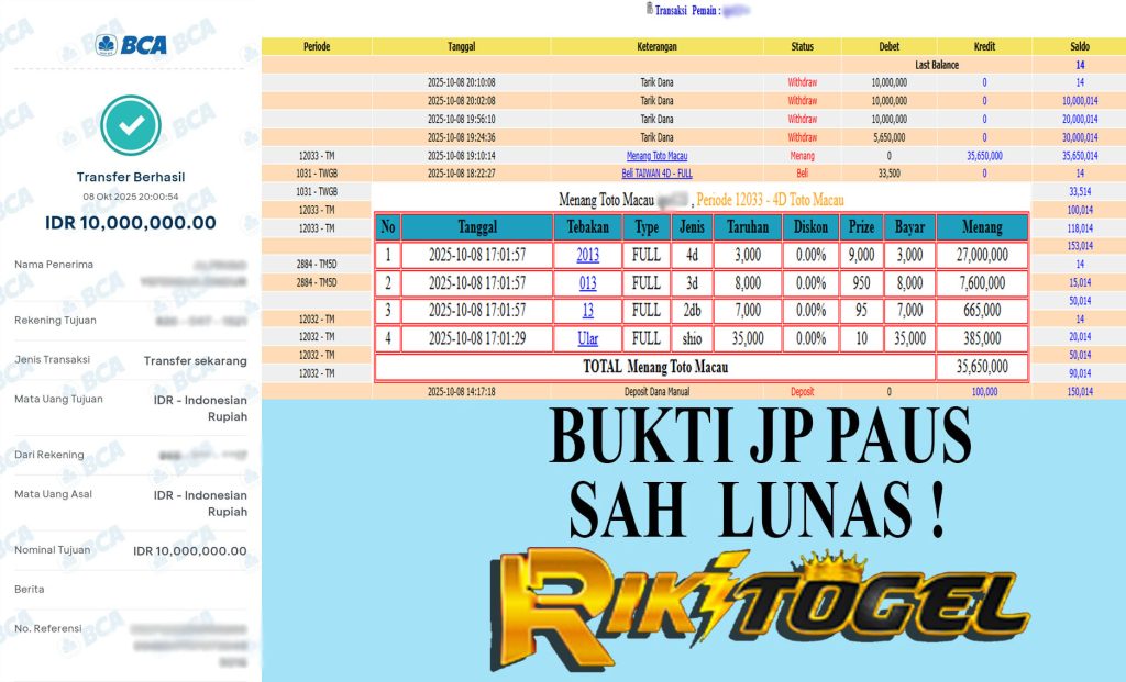 Bukti JP Paus User igoxxxxx Pada Pasaran Pool Toto Macau 4D 08 Oktober 2025