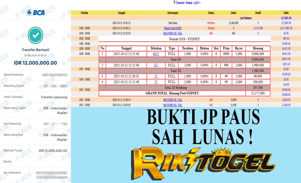 Bukti JP Paus User upixxxxxx Pada Pasaran Pool SYDNEY 12 Oktober 2025