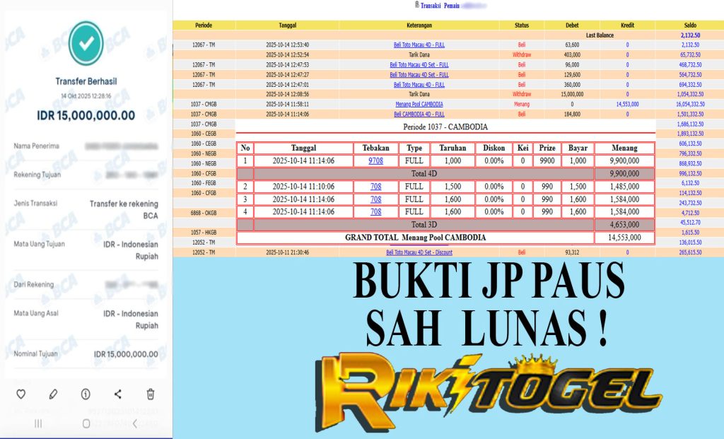 Bukti JP Paus User ahlxxxxxxxx Pada Pasaran Pool CAMBODIA 14 Oktober 2025