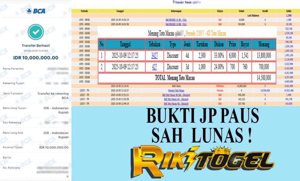 Bukti JP Paus User qilxxxx Pada Pasaran Pool Toto Macau 4D 09 Oktober 2025