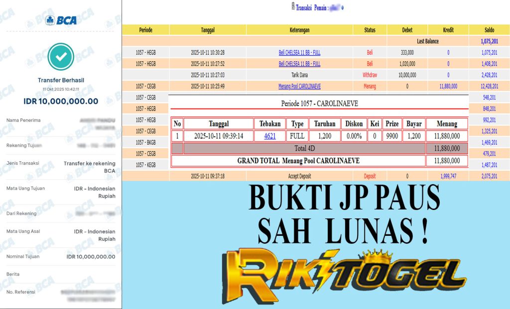 Bukti JP Paus User qilxxx Pada Pasaran Pool CAROLINAEVE 11 Oktober 2025
