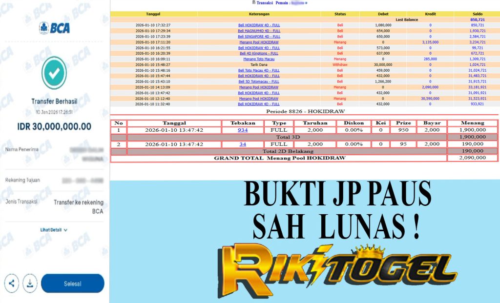 Bukti JP Paus User haXXXXXX Pasaran Pool HOKIDRAW 10 Januari 2026