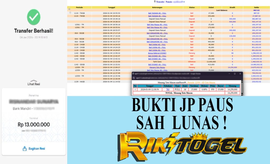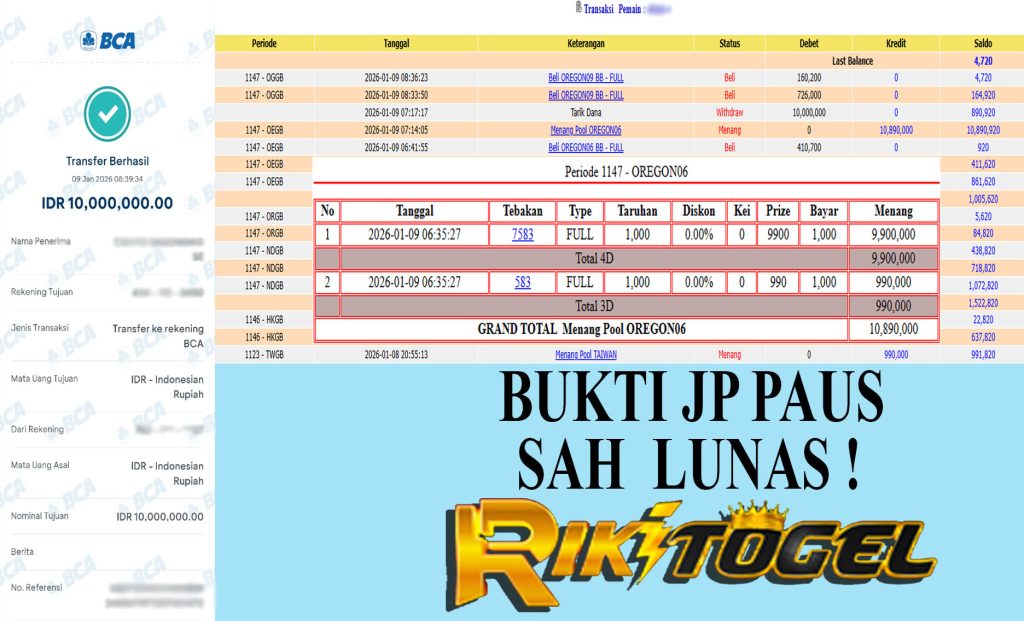 Bukti JP Paus User rikxxxxxx Pasaran Pool OREGON 06 09 Januari 2026