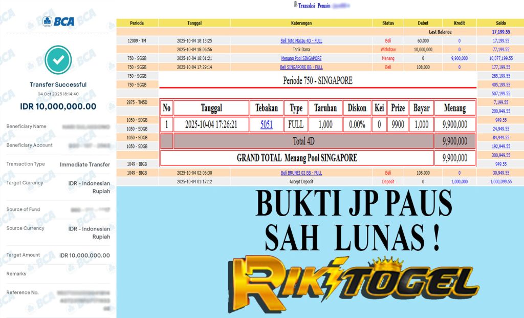 Bukti JP Paus User qilxxxxxx Pada Pasaran Pool SINGAPORE 05 Oktober 2025