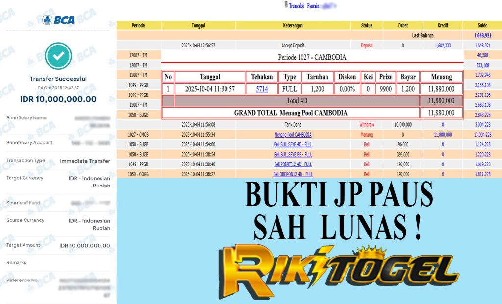 Bukti JP Paus User qilxxxxx Pada Pasaran Pool CAMBODIA 04 Oktober 2025