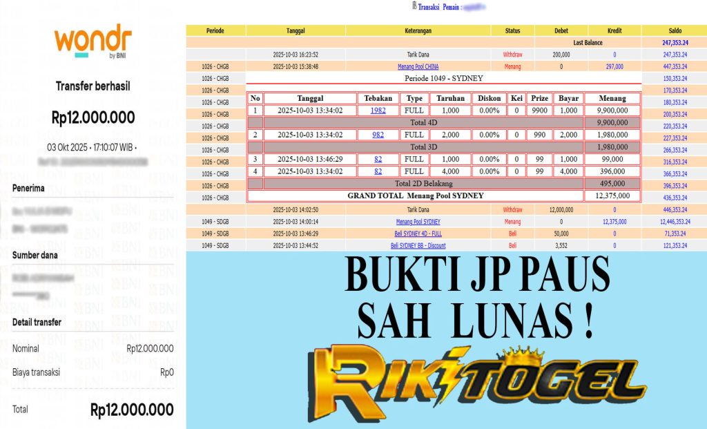 Bukti JP Paus User anjxxxxxxx Pada Pasaran Pool SYDNEY 03 Oktober 2025