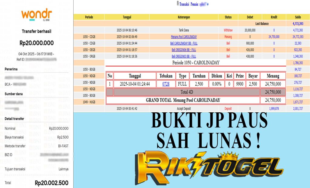 Bukti JP Paus User qilxxxxx Pada Pasaran Pool CAROLINA DAY 04 Oktober 2025