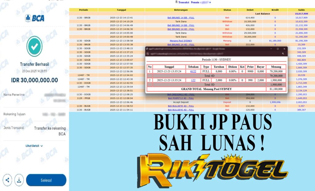 Bukti JP Paus User Qixxxxx Pasaran Pool SYDNEY 23 Desember 2025