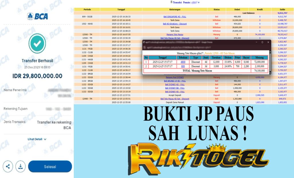 Bukti JP Paus User Qixxxxx Pasaran Pool  Toto Macau 25 Desember 2025