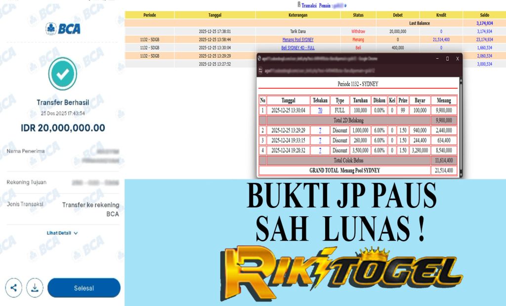 Bukti JP Paus User Goxxxxx Pasaran Pool SYDNEY 25 Desember 2025