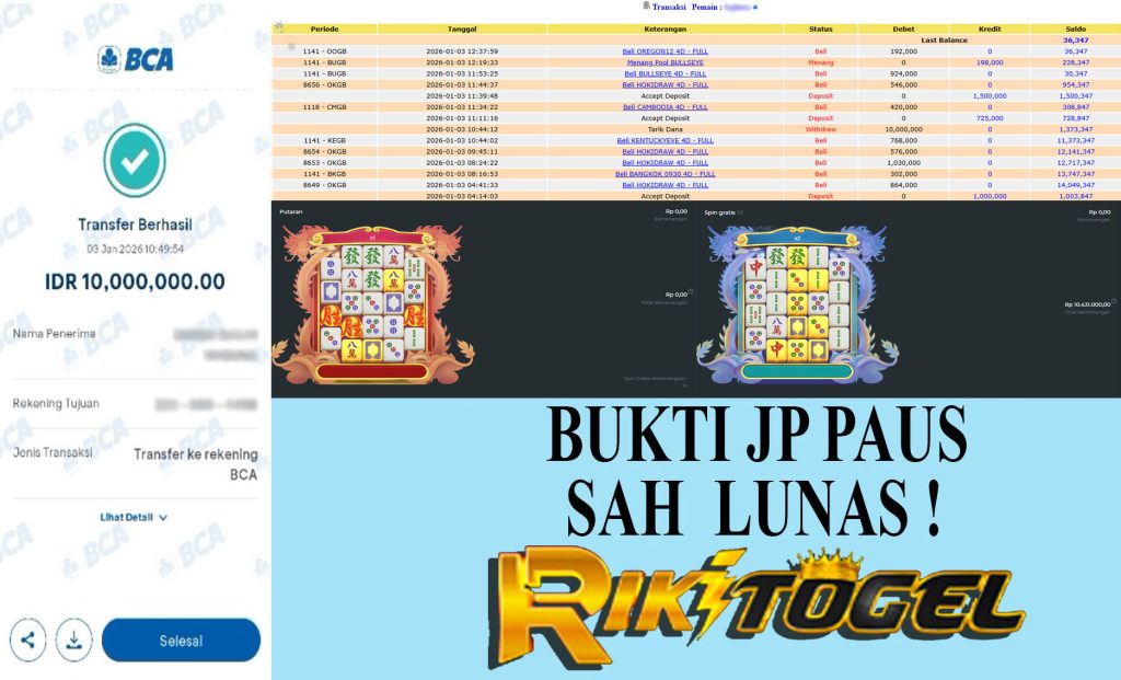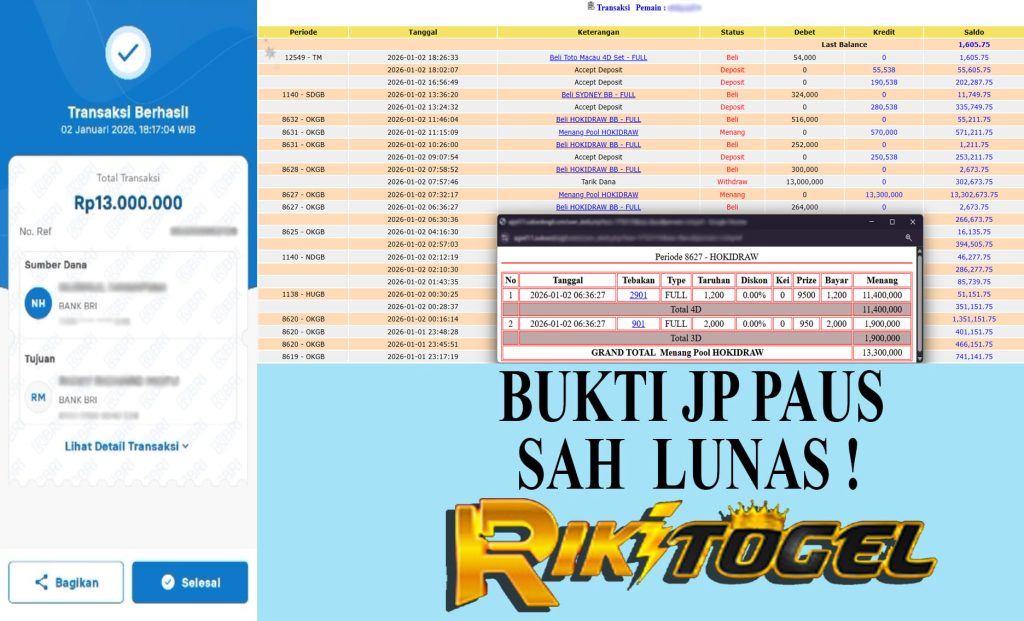 Bukti JP Paus User Rixxxxx Pasaran Pool HOKIDRAW 02 Januari 2026