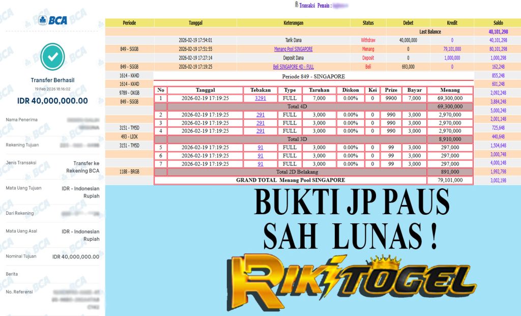 Bukti JP Paus User hajxxxxxxxxx Pasaran Pool SINGAPORE 19 February 2026