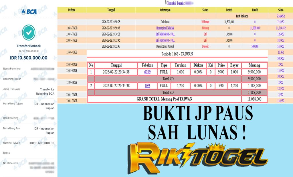 Bukti JP Paus User bloxxxxxxx Pasaran Pool TAIWAN 22 February 2026