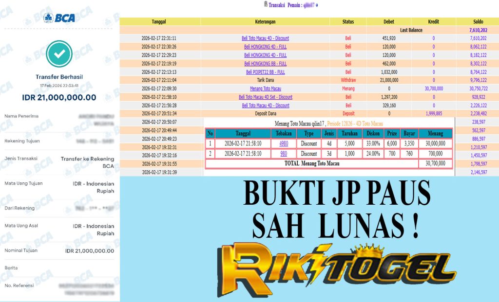 Bukti JP Paus User qilXXXX Pasaran Pool  Toto Macau 17 February 2026