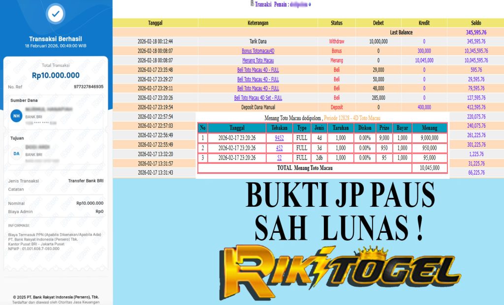 Bukti JP Paus User dodXXXXX Pasaran Pool  Toto Macau 18 February 2026
