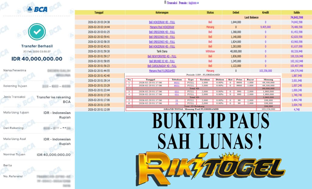 Bukti JP Paus User hajXXXXX Pasaran Pool FLORIDAMID 20 February 2026